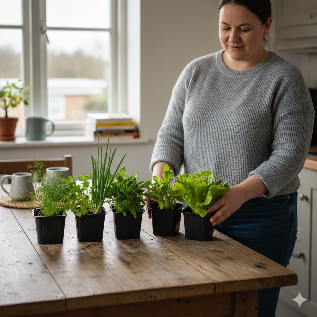 Компактний розмір дозволяє розмістити їх навіть на маленькому підвіконні, а акуратний вигляд робить горщики частиною затишного кухонного декору. До того ж усі рослини легко відновлюються після зрізання, тож кожен горщик даруватиме вам свіжу зелень і пряні аромати багато тижнів поспіль.